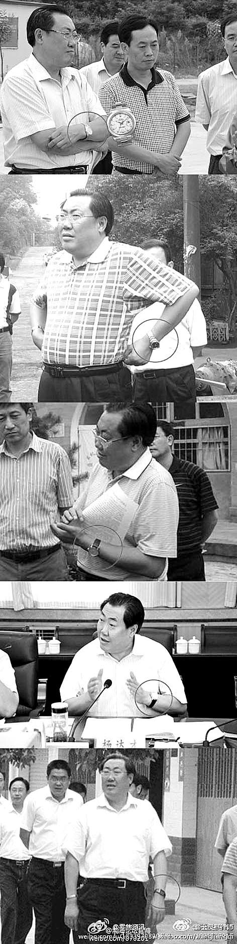 人肉搜索的大幕隨即開啟。當日19時53分,網(wǎng)友“百姓大于天”在其微博爆料稱,涉事官員為時任陜西省安監(jiān)局局長楊達才。22時29分,網(wǎng)友“衛(wèi)莊”在其微博發(fā)布了一張楊達才佩戴手表的照片,并稱“網(wǎng)友懷疑是價值3.8萬多歐元的歐米茄”。23時57分,渤海論壇的新浪官方微博發(fā)布了楊達才在不同場合佩戴有5塊不同款式手表的照片,稱這是“陜西省安監(jiān)局局長楊達才同志的愛好”。8月27日18時12分,第五大道奢侈品網(wǎng)首席運營官孫多菲在其微博中稱:“我已向表行業(yè)內(nèi)專家請教:第一張:6.5萬元左右的蠔式恒動系列勞力士;第二張:3.4萬元至3.5萬元之間的歐米茄;第三張:江詩丹頓18K玫瑰金表殼,而且是機械的,市場估計在20萬元至40萬元;第四張:歐米茄,價格也就3萬多元到4萬元;第五張:雷達全陶瓷,市值估計3萬元!边@條微博被轉(zhuǎn)發(fā)14531次,引發(fā)評論5350條。楊達才因此也被網(wǎng)民戲稱為“表哥”!