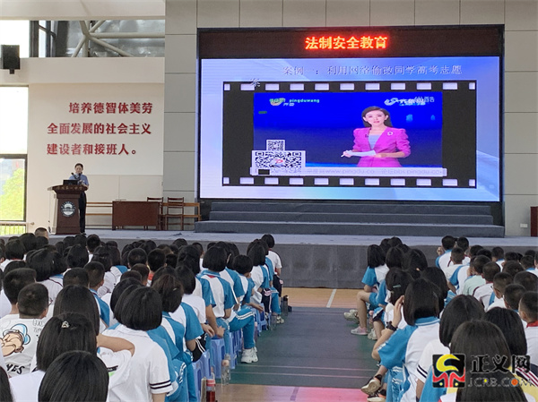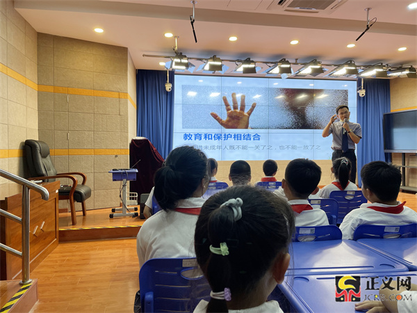 開學(xué)第一天,上海市虹口區(qū)檢察院檢察官助理、多倫同心小學(xué)法治副校長奚之強以“全方位保護少年的你們”為題,給同學(xué)們上了一堂精彩的法治課,引導(dǎo)同學(xué)們提升自我保護意識,遠離違法犯罪。(上海市虹口區(qū)檢察院供圖)