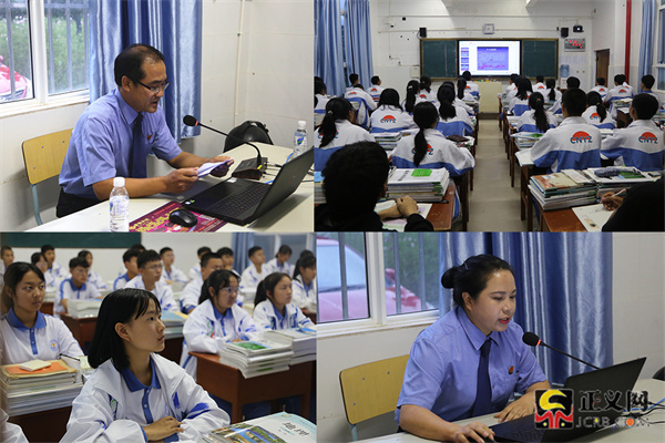 開學(xué)第一天,云南省昌寧縣檢察院檢察官走進昌寧縣第一中學(xué),通過播音室的局域網(wǎng)絡(luò),以音視頻形式開展法治講座,全校1000余名學(xué)生在各自教室同步收看。(云南省昌寧縣檢察院供圖)