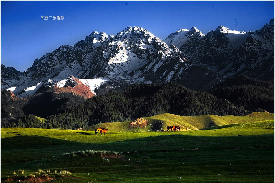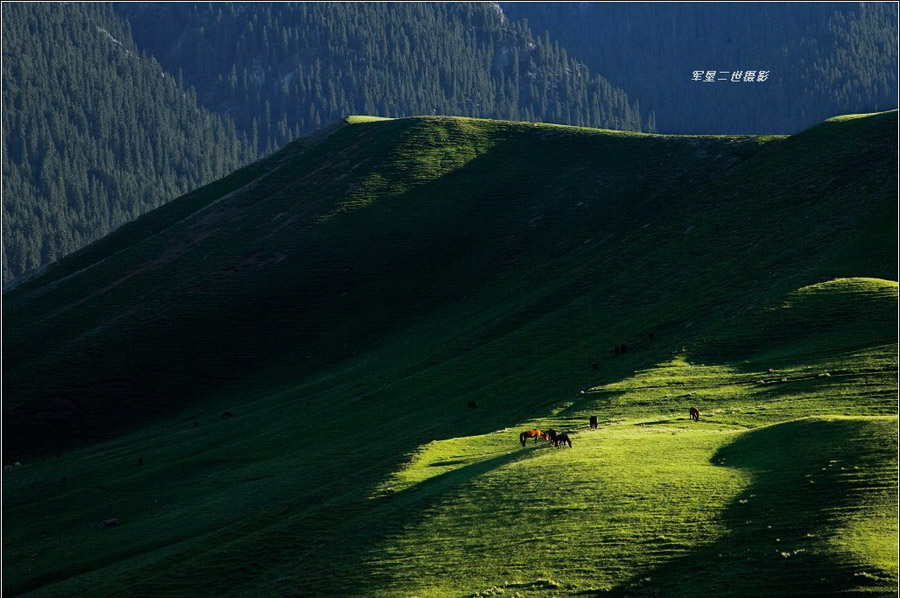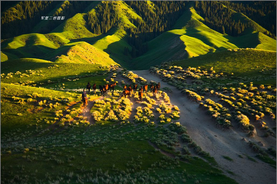 天山山脈把新疆分成兩部分:南邊是塔里木盆地;北邊是準噶爾盆地。準噶爾盆地西北邊緣的山地不很高,而且有很多缺口,大西洋、北冰洋的氣流能夠進入,所以氣候比較濕潤,這里的草場優(yōu)良,畜牧業(yè)發(fā)達。(圖片來源:地理論壇,作者:軍墾二世)