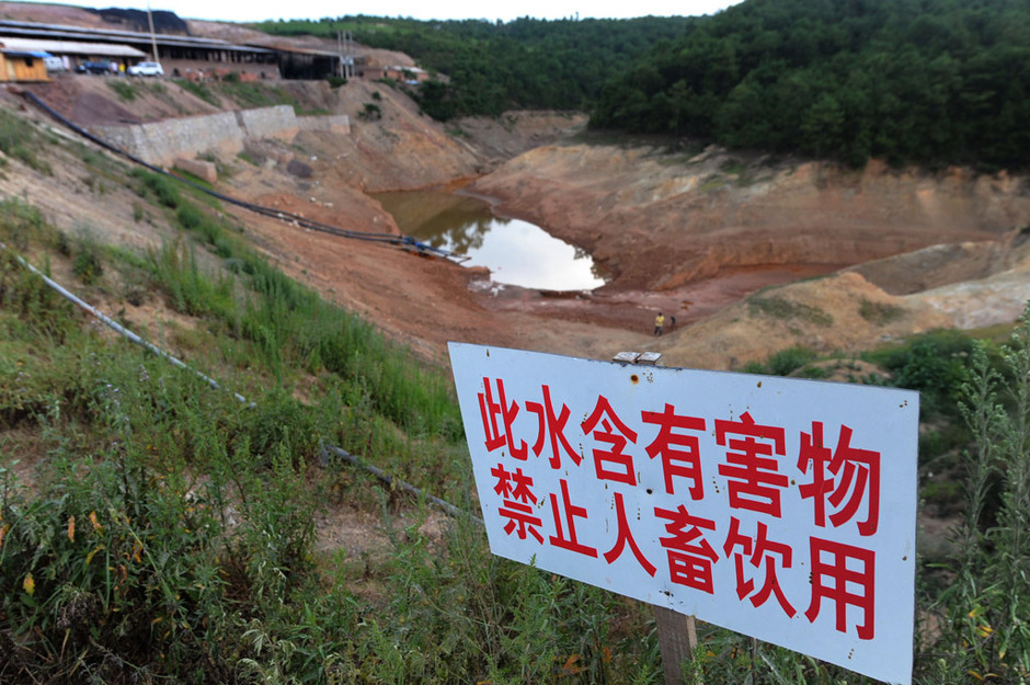 曾經被污染的叉沖水庫(8月14日攝)。云南曲靖有5000噸鉻渣倒入水庫,致使水庫致命六價鉻超標2000倍。事后云南將30萬立方米受污染水,鋪設管道排入珠江源頭南盤江。由于化工廢渣的非法丟放,曲靖市麒麟?yún)^(qū)越州鎮(zhèn)村民賴以生存的水源——叉沖水庫在過去幾個月中遭受致命侵襲。在雨水的沖刷和滲透下,總量達5000余噸的重毒化工廢料鉻渣,把水庫變?yōu)榭植赖摹岸驹础。隨后,經過當?shù)匾幌盗械某恋砼c稀釋作業(yè),致命“毒水”被直接排放到水庫下游的珠江源頭南盤江中。