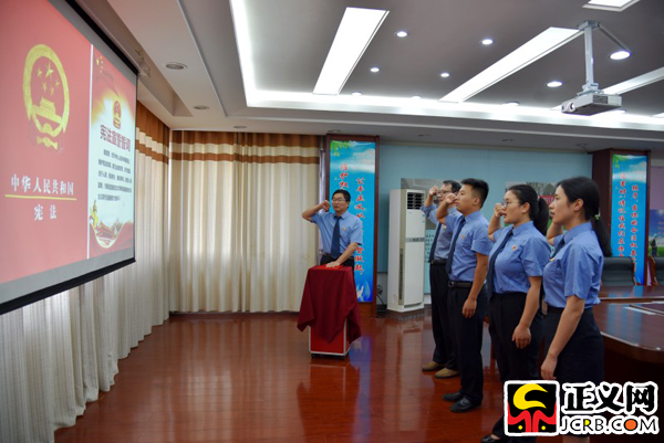 宣誓后,該院政治部主任指出,珍惜人生新的轉(zhuǎn)折點(diǎn),強(qiáng)化人民意識和責(zé)任意識,時(shí)刻維護(hù)憲法和法律的權(quán)威和尊嚴(yán),把誓言時(shí)刻銘記于心,堅(jiān)定不移為憲法規(guī)定的黨的崇高事業(yè)、憲法寫下的人民權(quán)力而不懈奮斗,堅(jiān)定不移做憲法的忠實(shí)崇尚者、嚴(yán)格遵守者、自覺運(yùn)用者、堅(jiān)定捍衛(wèi)者。