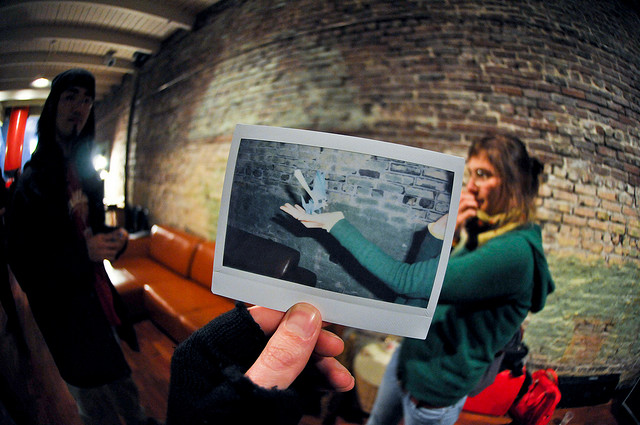 相信大家都有見(jiàn)過(guò)或玩過(guò)那種將一張畫放到真實(shí)世界中,將畫面與實(shí)際景物結(jié)合起來(lái)拍成照片的創(chuàng)意攝影。其實(shí)除了繪畫外,雜志、手機(jī)、平板電腦等等都可以有同樣的玩法。攝影師Shawn McClung就利用拍立得相機(jī)創(chuàng)作了這組作品。