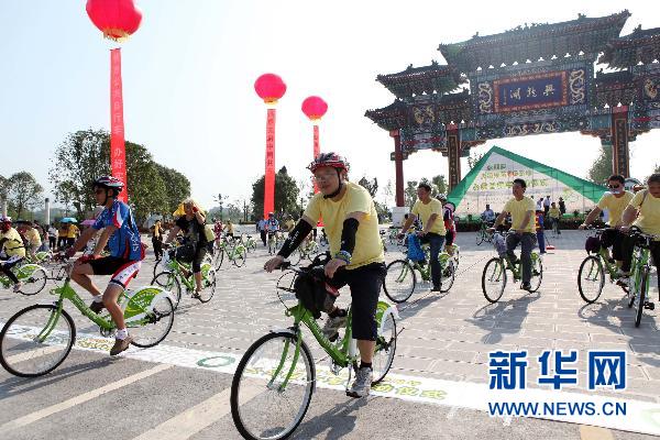 自行車愛好者參加重慶市永川區(qū)公共自行車啟動(dòng)儀式。新華社發(fā)(陳仕川 攝)