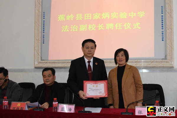 正義網(wǎng)梅州1月2日電(通訊員李紅梅 丘媛鈺)近日,廣東省蕉嶺縣田家炳實(shí)驗(yàn)中學(xué)舉行“法治副校長”聘任儀式暨法治宣講活動(dòng),廣東省蕉嶺縣檢察院檢察長藍(lán)海接過縣教育局局長張慧頒發(fā)的聘書,成為蕉嶺縣田家炳實(shí)驗(yàn)中學(xué)法治副校長。