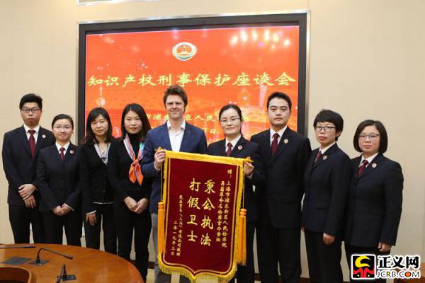 正義網(wǎng)上海4月8日電(通訊員施晨霞)“作為一家科技型企業(yè),在案件的辦理過程中感受到中國政府在保護(hù)知識產(chǎn)權(quán)的堅(jiān)定決心!比涨,英國戴森公司全球知識產(chǎn)權(quán)總監(jiān)西蒙·福瑞特斯等一行代表戴森公司專程來到上海市浦東新區(qū)檢察院,感謝該院依法保護(hù)戴森公司的知識產(chǎn)權(quán),并為承辦假冒“Dyson”注冊商標(biāo)系列案的吳菊萍檢察官辦案組送上“秉公執(zhí)法 打假衛(wèi)士”的錦旗。