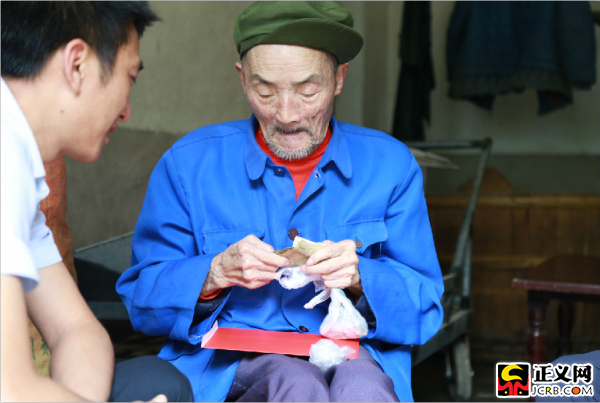 6月27日,陳剛代表中共大竹縣委和檢察院黨組深入到蒲包鄉(xiāng)、姚市鄉(xiāng)、歐家鎮(zhèn)開展黨員慰問活動(dòng),并為老黨員、困難黨員和優(yōu)秀農(nóng)民工黨員送上節(jié)日祝福和問候。在蒲包鄉(xiāng)三星村三組蔡德乾老黨員家中,陳剛詳細(xì)詢問了蔡老的生活狀況、家庭條件、身體狀況等問題,了解到蔡老是1956年加入中國共產(chǎn)黨,是三星村第一任支部書記,1985年冬卸任,雙目失明已經(jīng)很多年,但是從未向組織提出過困難。當(dāng)蔡老聽出村支書也在旁邊,當(dāng)即從自己兜里摸出專門用塑料袋分開裝的黨費(fèi),交到了蔣勇的手中!安汤厦磕甓际沁@樣,將黨費(fèi)專門裝在一個(gè)袋子放在身上,然后交給我……”蔣勇介紹道。