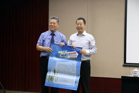 ▲廉政課結(jié)束后,西安市檢察院預(yù)防處處長(zhǎng)凌選琪向陸港集團(tuán)贈(zèng)送預(yù)防國(guó)企干部職務(wù)犯罪法治掛圖。呂珊珊 攝