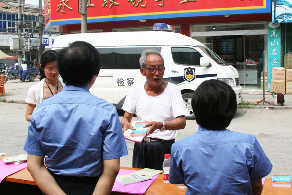 2012年6月下旬,舉報(bào)宣傳周的日子里,安徽省蕪湖市鳩江區(qū)人民檢察院的檢察官,采用巡回宣傳舉報(bào)知識(shí)的方式深入街道、鄉(xiāng)鎮(zhèn)、社區(qū)進(jìn)行舉報(bào)知識(shí)宣傳。將舉報(bào)宣傳、深入群眾和踐行弘揚(yáng)"忠誠、為民、公正、廉潔"的政法干警核心價(jià)值觀主題教育活動(dòng)緊密聯(lián)系。