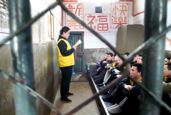 2009年2月13日,為了幫助教育大墻內(nèi)的在押未成年人,北京市海淀區(qū)檢察院監(jiān)所處和海淀看守所為大墻內(nèi)的每個未成年監(jiān)室安排了一名在押人員擔任教師,每天給孩子們講授文化知識,取得很好的社會效果。此圖片為在押教師給未成年人上課,他們在專心聽講。