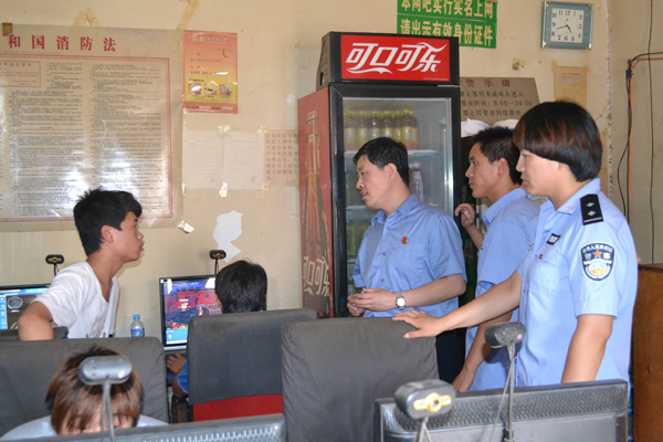 在政法干警核心價值觀教育活動中,河北省武強(qiáng)縣人民檢察院立足職能,強(qiáng)化職業(yè)操守,連日來聯(lián)合縣公安局、文化廣播電影電視新聞出版局對全縣18家網(wǎng)吧進(jìn)行了一一聯(lián)合檢查,其中發(fā)現(xiàn)黑網(wǎng)吧1家,在5家網(wǎng)吧中有未成年出入,發(fā)現(xiàn)8名未成年學(xué)生利用暑假期時間在網(wǎng)吧玩游戲或上網(wǎng)瀏覽、翻看黃色、暴力等網(wǎng)頁,更有甚者在網(wǎng)吧里敬火點煙、噴云吐霧。
