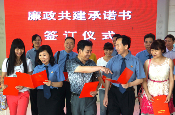 河南省鄭州市中原區(qū)檢察院采取多種形式開展廉潔教育,并將宣傳教育向干警家屬延伸,確保干警八小時(shí)外廉潔。該院近日舉行廉政共建承諾書簽字儀式,干警和家屬們都說,簽訂廉政承諾書是。