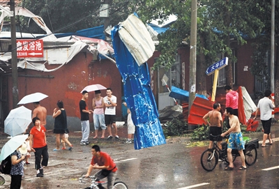 場景:暴雨中大風掀起房屋頂棚,砸傷多人致2死3傷