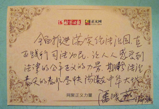 潘曉燕委員寄語(yǔ)檢察日?qǐng)?bào)社正義網(wǎng):讓人人感受到法律的公平正義的力量