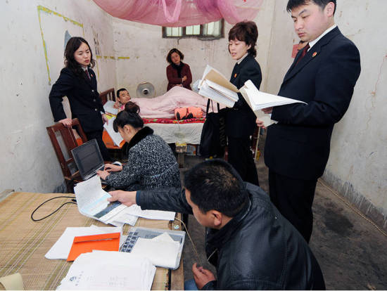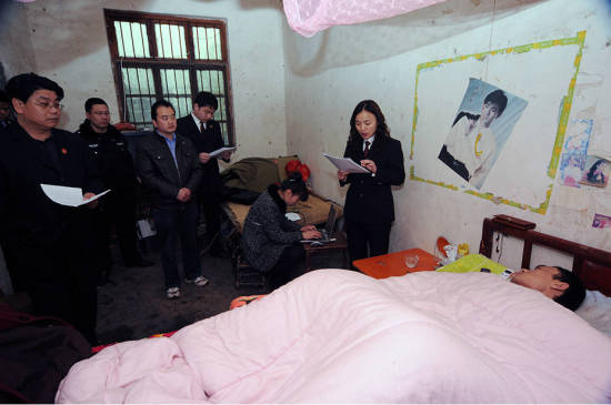 開庭當(dāng)天,檢察官、法官帶領(lǐng)著書記員、法警冒著嚴(yán)寒來到被告人家中,在被告人的病床邊完成了案件庭審。高剛 攝