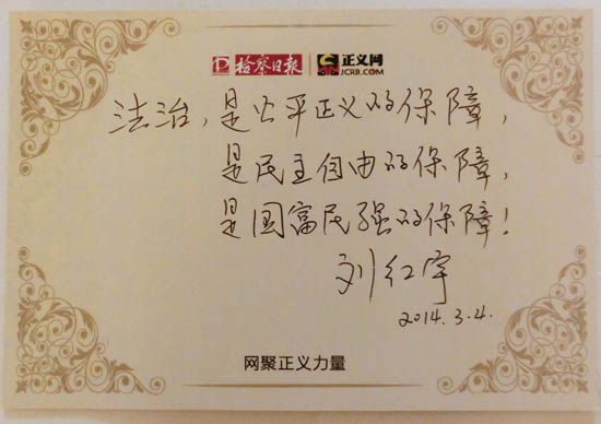 劉紅宇寄語(yǔ):法治,是公平正義的保障