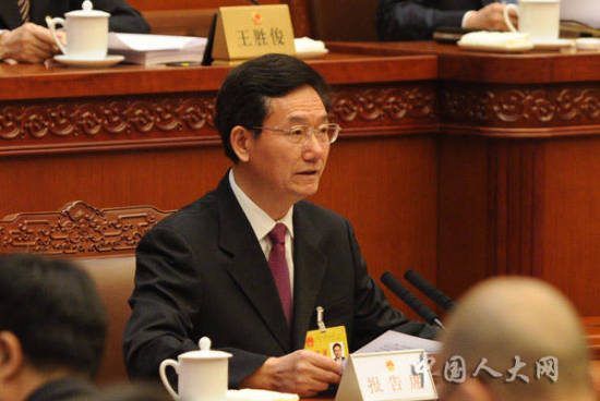 2月25日下午,十二屆全國人大常委會第十三次會議舉行第一次全體會議,全國人大法律委員會副主任委員蘇澤林作關于反恐怖主義法草案修改情況的匯報。中國人大網(wǎng) 李杰 攝