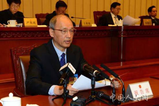 4月20日,十二屆全國人大常委會(huì)第十四次會(huì)議舉行第一次全體會(huì)議,全國人大常委會(huì)法律委員會(huì)副主任安建作關(guān)于廣告法修訂草案審議結(jié)果的報(bào)告。馬增科攝