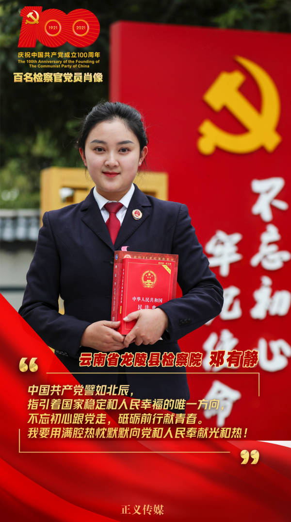 鄧有靜,云南省龍陵縣人民檢察院三級檢察官助理,30歲,黨齡11年。