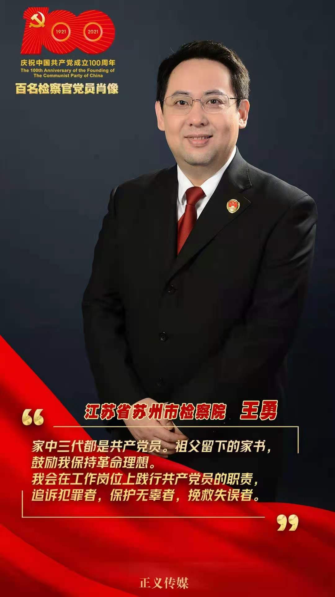 王勇,江蘇省蘇州市檢察院黨組成員、副檢察長,46歲,黨齡21年。