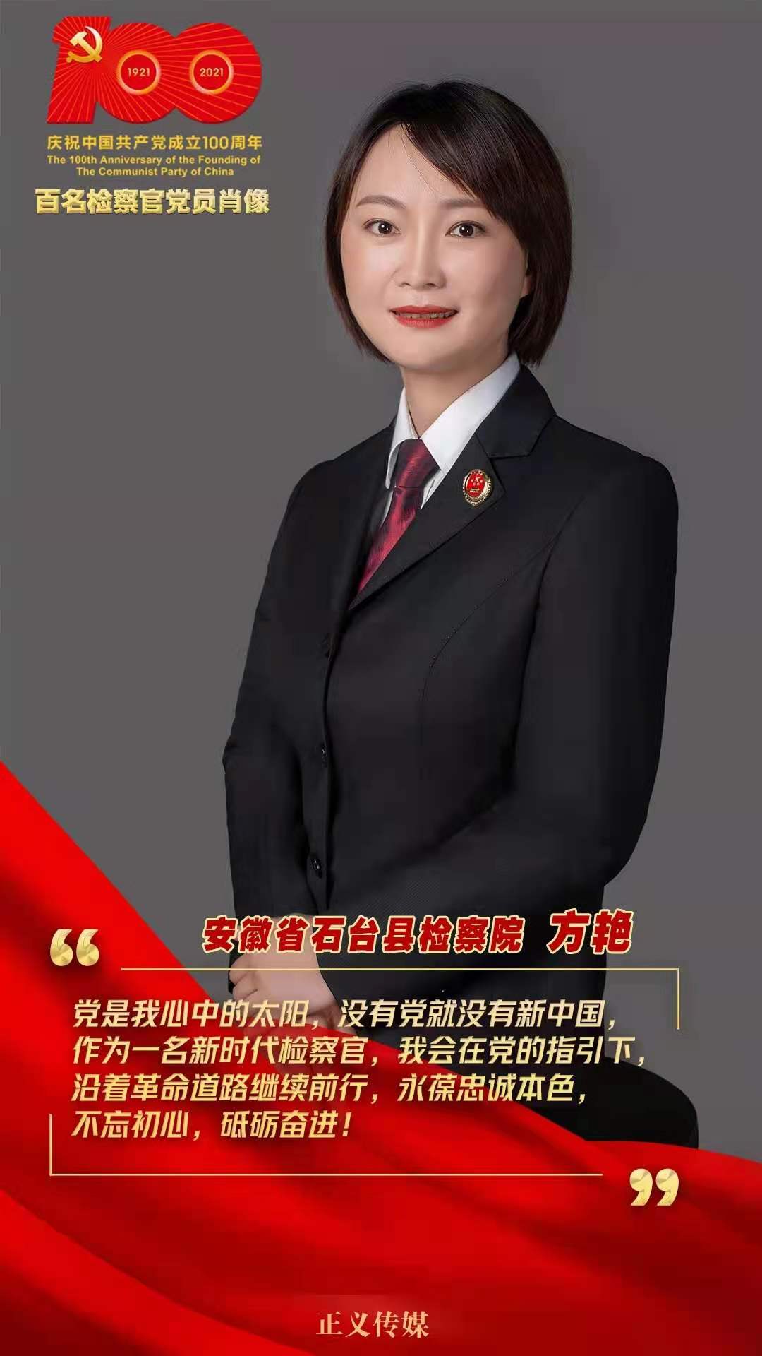 方艷,安徽省石臺縣檢察院黨組成員、副檢察長,年齡40歲,黨齡6年。