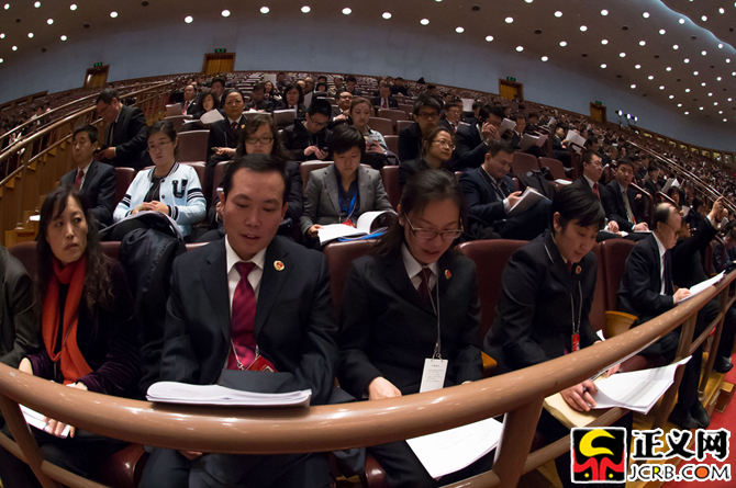 3月13日上午,十二屆全國(guó)人大四次會(huì)議舉行第三次全體會(huì)議,聽取最高人民法院院長(zhǎng)周強(qiáng)關(guān)于最高人民法院工作的報(bào)告,聽取最高人民檢察院檢察長(zhǎng)曹建明關(guān)于最高人民檢察院工作的報(bào)告。正義網(wǎng)記者程丁 攝