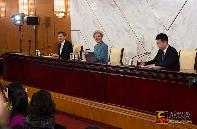 3月4日,十二屆全國(guó)人大四次會(huì)議在人民大會(huì)堂舉行新聞發(fā)布會(huì),大會(huì)發(fā)言人傅瑩回答中外記者的提問(wèn)。本次發(fā)布會(huì)共有18名中外記者提問(wèn),其中11位記者提問(wèn)涉及法治話題,占提問(wèn)總數(shù)的61%。民法典的編纂工作、慈善法、推進(jìn)全面依法治國(guó)、全國(guó)人大審議境外非政府組織管理法草案、全國(guó)人大立法、反腐敗、《中華人民共和國(guó)反家庭暴力法》、稅收法、涉黃涉毒或者微博禁言的演員、政府依法行政、《大氣污染防治法》等。正義網(wǎng)記者程丁攝