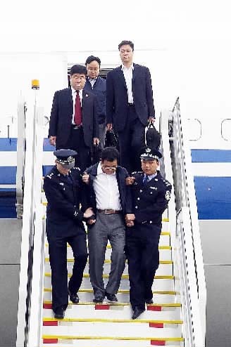 “百名紅通”嫌犯李華波被遣返回國(guó)。正義網(wǎng)發(fā)