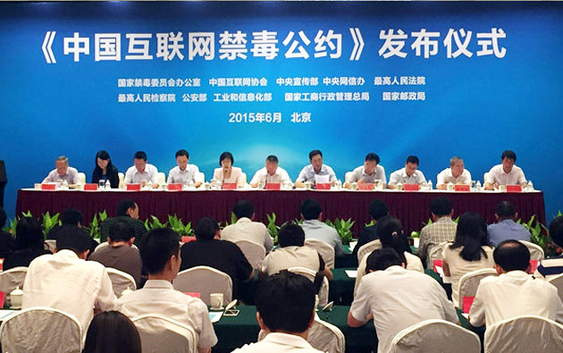 2015年6月29日,國家禁毒委員會辦公室牽頭會同中央宣傳部、中央網(wǎng)絡安全和信息化領(lǐng)導小組辦公室、最高人民法院、最高人民檢察院、公安部、工業(yè)和信息化部、國家工商行政管理總局、國家郵政局和中國互聯(lián)網(wǎng)協(xié)會,在北京聯(lián)合發(fā)布《中國互聯(lián)網(wǎng)禁毒公約》(以下簡稱《公約》)。50家國內(nèi)主要互聯(lián)網(wǎng)企業(yè)以及5家寄遞企業(yè)負責人現(xiàn)場簽署承諾書,宣誓對網(wǎng)絡涉毒問題保持“零容忍”。