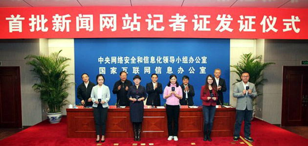 2015年11月6日,國家互聯(lián)網(wǎng)信息辦公室、國家新聞出版廣電總局在北京聯(lián)合舉行首批新聞網(wǎng)站記者證發(fā)證儀式,為14家中央主要新聞網(wǎng)站首批594名記者發(fā)放新聞?dòng)浾咦C。
