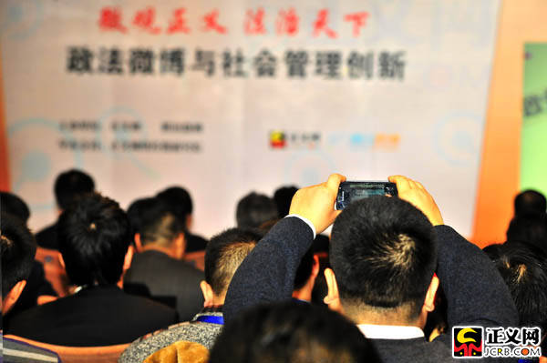 12月24日上午9時(shí),由正義網(wǎng)與騰訊微博主辦的“政法微博與社會(huì)管理創(chuàng)新”峰會(huì)將在北京召開。與會(huì)嘉賓將就政法信息微博公開現(xiàn)狀、突發(fā)政法輿情微博應(yīng)對(duì)機(jī)制、政法官員微博內(nèi)容規(guī)范、微博問(wèn)政與社會(huì)管理創(chuàng)新等問(wèn)題進(jìn)行探討。圖為現(xiàn)場(chǎng)嘉賓用手機(jī)拍攝,實(shí)況直播峰會(huì)動(dòng)態(tài)。程丁/攝