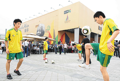 有趣的是,通過衛(wèi)星連接,世博園里的球迷還能與在世界杯球場(chǎng)上觀看比賽的球迷進(jìn)行交流,世界杯期間的各場(chǎng)賽事也將在此播出。游客還能從視頻中了解比賽場(chǎng)館和舉辦城市。另外,南非館在世界杯開幕之后,還在展館前擺起了籠式足球游戲,一時(shí)成為園區(qū)最熱門的互動(dòng)項(xiàng)目之一。雖然獎(jiǎng)品只是世界杯紀(jì)念水壺,幾小時(shí)內(nèi)數(shù)百人為此在鐵籠中大秀腳法。