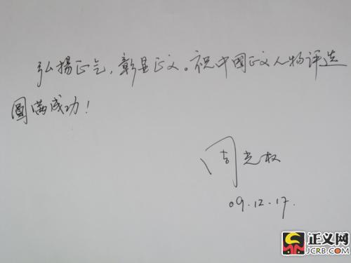 寄語:弘揚正氣,彰顯正義,祝中國正義人物評選圓滿成功!