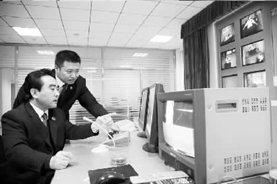 山東省棗莊市市中區(qū)檢察院實(shí)現(xiàn)了同步錄音錄像“兩套設(shè)備、雙路監(jiān)控、同時(shí)錄制”。圖為該院檢察長張志強(qiáng)通過同步錄音錄像系統(tǒng)監(jiān)督查看干警規(guī)范辦案情況。 本報(bào)通訊員周波 記者盧金增攝