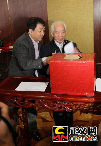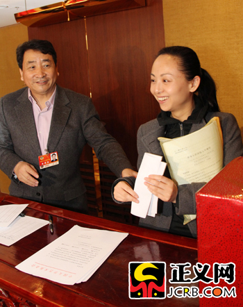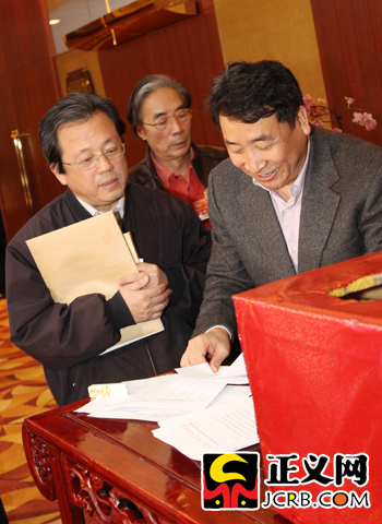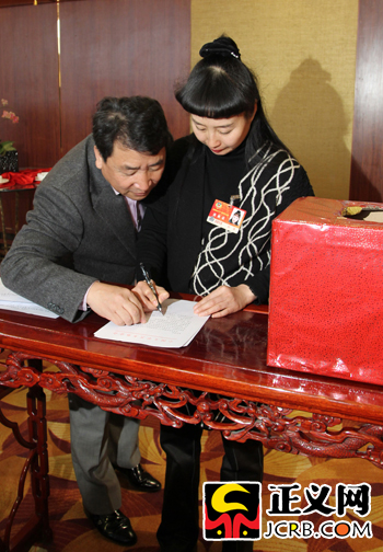 有關(guān)媒體報(bào)道貧困地區(qū)十萬(wàn)小學(xué)生中有九萬(wàn)手中無(wú)字典現(xiàn)象,希望能得到社會(huì)幫助。3月12日,在姜昆委員的呼吁下,中國(guó)文學(xué)藝術(shù)基金會(huì)在代表、委員中間開(kāi)展向貧困地區(qū)小學(xué)獻(xiàn)愛(ài)心“字典援助活動(dòng)”,代表委員們紛紛慷慨解囊,積極捐款捐書(shū)。圖為“字典援助活動(dòng)”現(xiàn)場(chǎng)。徐伯黎/攝