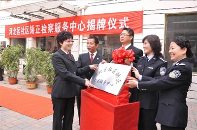 發(fā)揮檢察職能參與社會(huì)管理創(chuàng)新,各地檢察機(jī)關(guān)都已積極行動(dòng)起來。圖為天津市河北區(qū)檢察院在該區(qū)月牙河街舉行社區(qū)矯正檢察服務(wù)中心揭牌儀式。本報(bào)記者張寧 通訊員高偉攝