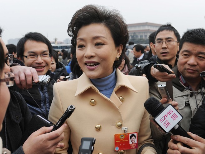 3月3日下午3時,全國政協(xié)十一屆五次會議在北京人民大會堂隆重開幕。全國政協(xié)委員楊瀾接受記者采訪。(杜洋 攝)