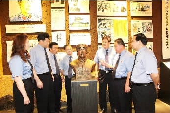新縣檢察院檢察長(zhǎng)余立在“第一公訴人”程玉階塑像前,與公訴科檢察干警一起緬懷先輩。