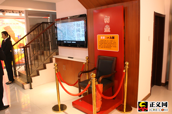 展區(qū)內(nèi)的顯要位置擺放了一張代表酒色財氣組成的座椅,警示國家工作人員勿以貪欲濫用手中的權(quán)力。 張慶攝
