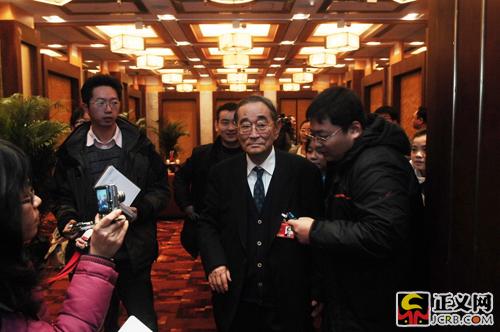 正義網(wǎng)北京3月4日訊(記者程。3月4日上午,全國政協(xié)十一屆三次會議經(jīng)濟界小組討論會上,厲以寧就改革土地招標,扼制高房價等問題接受記者采訪。(攝影/程丁)