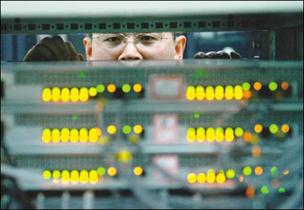 科研人員在調(diào)試我國首臺(tái)采用國產(chǎn)高性能通用處理器芯片的萬億次計(jì)算機(jī)