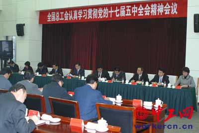 全國總工會(huì)10月20日上午召開認(rèn)真學(xué)習(xí)貫徹黨的十七屆五中全會(huì)精神會(huì)議。中共中央政治局委員、全國人大常委會(huì)副委員長、中華全國總工會(huì)主席王兆國出席會(huì)議并發(fā)表重要講話,全總黨組書記、副主席、書記處第一書記王玉普主持會(huì)議。