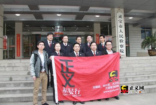 河南省靈寶市人民檢察院檢察長楊紅巖帶領(lǐng)班子成員和正義網(wǎng)記者合影。 姚宇/攝