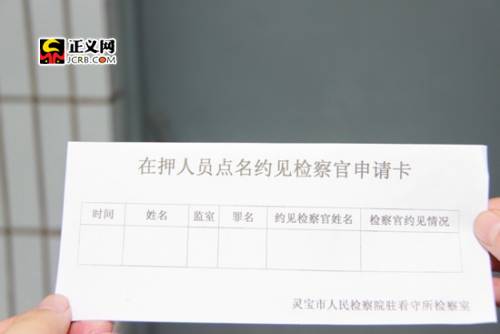 張靈建主任向正義網(wǎng)記者展示了在押人員點名約見檢察官申請卡。 姚宇/攝